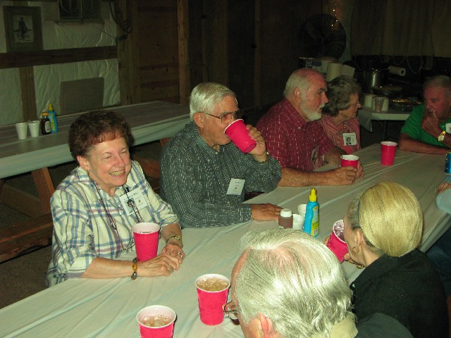 Lenda Sutton Wilson, Reford Schmittou, Virginia Echols Schmittou, Jim Tatum at the end of the table; foreground, Wayne and Maralyn Martin Harveson |