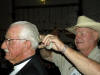 Cullen Hunt removes Ken Fraser's charitable ponytail. |