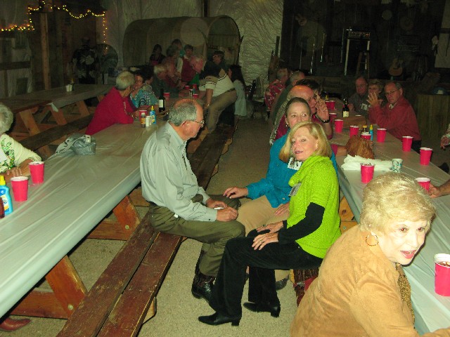 Lenda Sutton Wilson, Reford Schmittou, Virginia Echols Schmittou, Jim Tatum at the end of the table; foreground, Wayne and Maralyn Martin Harveson |